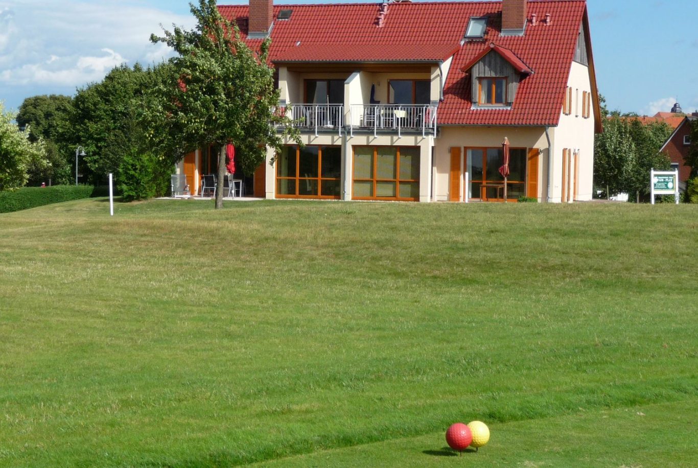 Das Haus “Fair Play” schließt sich direkt dem Golf Fleesensee Synchron Platz an. Vom Wohnzimmer aus sowie von der Terrasse hat man die weite Golflandschaft immer im Blick. Das Haus liegt in westlicher Ausrichtung, so dass man die Helligkeit der langen Sommertage voll bis zum Sonnenuntergang auskosten kann.